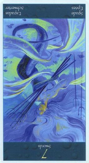 The 7 of Swords is about making slow progress because you can't trust the situation and/or people around you.