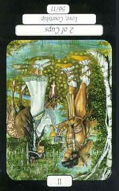 This the first assignment number of the Cups suit. Unlike Wands, with the Fire element, Cups, with the water element, has a lot more patience. Water is by nature more introspective, and this second card in the Cups suit is indeed about exploring yourself. The outcome is uncertain as always, but it usually results in better acceptance of yourself.