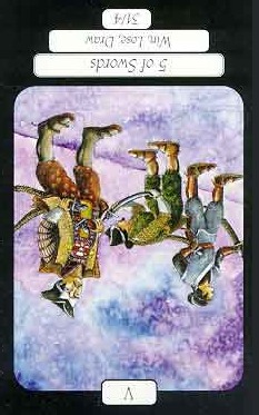 If a card is upside down, that is the common notation for the opposite meaning of the card, also known as the "negative" or "reversed" meaning of the card.