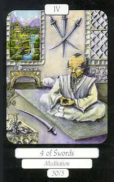 The 8 of Swords is about slowly regaining strength and energy. The 8 is an assignment number, and in the element of Swords it's a bit harder than usual.