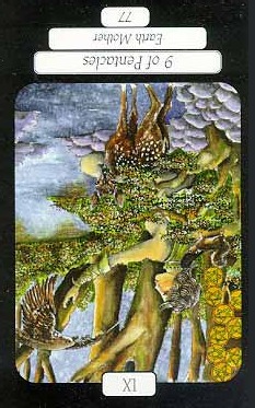 The 9 of Pentacles represents earned rest. The element Earth, attached to the Pentacles suit, appreciates the rest that completion of hard work brings. This is a good time for games and relaxation.
