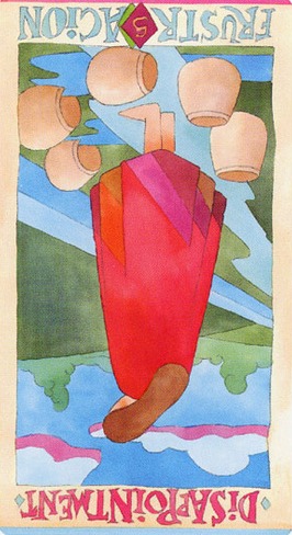 The 5 of Cups is about overcoming sadness and disappointment. You've let go of your old securities to embrace the new and exciting, now something has gone awry and you feel bad about that. But don't forget to notice those things that did go right.