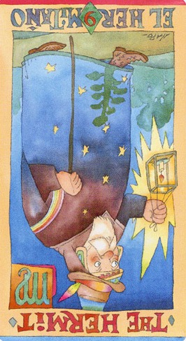 The Hermit carries the number 9. This is the highest base number. After 9 the composed numbers emerge. Therefore the number 9 is the gateway to a higher order. It is also a place to rest before embarking on the next leg of the journey.