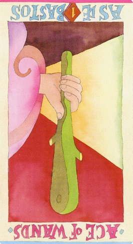 The ace of wands represents the beginning of an idea. The element fire and the number 1 give a powerful combination: enterprise and new beginnings apply to both. This is an energetic combination, which is why the card is generally considered a positive one. Spring is the season associated with this card.