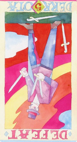 The 5 of Swords is about facing reality. The 5 is an assignment number, and in the slighly more difficult suit of Swords, it means you face a difficult challenge where your past experiences could hold you down.
