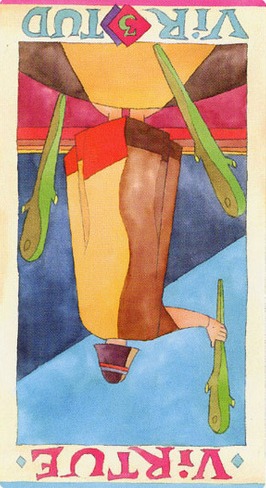 This card is about exposing your new ideas to the world. The Wand's element fire goes well with the number 3, as 3 is an output number, a number of results. Fire likes getting to results quickly.