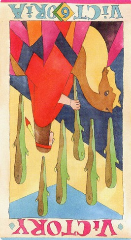 The 6 of Wands represents victory (over yourself maybe). 6 is the number that represents the rewards of hard work, which you did in card 5. When a 6 of Wands is in your game, you might be feeling a little proud with your accomplishments. But some modesty might help you shine even better.