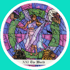 The World carries the number 21. As a composed number that is 3. The World is the third 3 in the Major Arcana. 3 is a reward number, so the third 3 must be even more powerful.