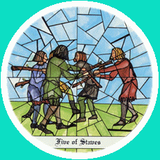 The 5 of Wands represents competition. The 5 is the second assignment number, and therefore a difficult card. 5 combined with the Wand's element fire challenges you. You'll have to fight hard for your idea, but you stand a good chance of succeeding.