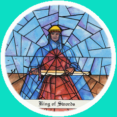 The King of Swords rules with diplomacy and a strong sense of responsibility, not just for himself but also for those around him, yet he is not afraid to make heavy decisions that compel him to eliminate dangers and dangerous opponents with some force.