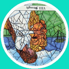 Strength is the second of the four midieval values. Justice, card 11, is the first, and the third, Temperance, is card 14.