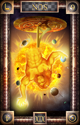 The Sun carries the number 19, a composed value of 1. This is the third composed 1 in the Major Arcana. It's the culmination of the 1's. The third 1 is a reward and a beginning at the same time. It also represents creative energy.