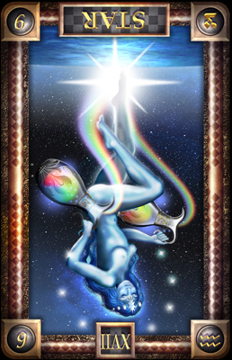 The Hermit shuts out the world and retreats into solitude to better understand some spiritual aspect of life. He opens to the cosmos and lets it's wisdom sink in. Hermits are often seen as wise old men who can guide a traveller along a journey.