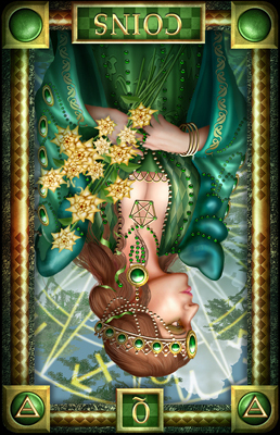 The Queen in the suit of Pentacles becomes aware of her Earthly attributes; she's reliable and sober, able to give good advice.