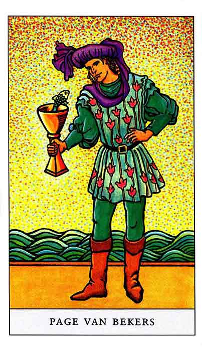 The Page of Cups is about cautiously exploring your own emotions (about the course ahead).