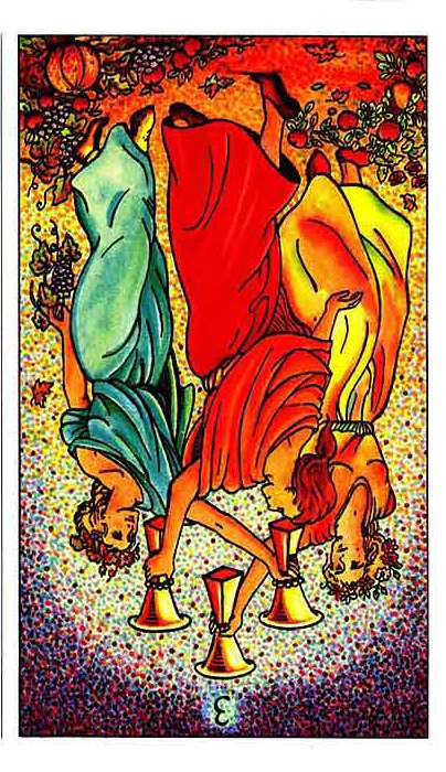 The 3 of Cups represents hope, faith and love. The 3 is a reward number and in this suit of Cups your feelings during that number will be that of joy and self-contentment.