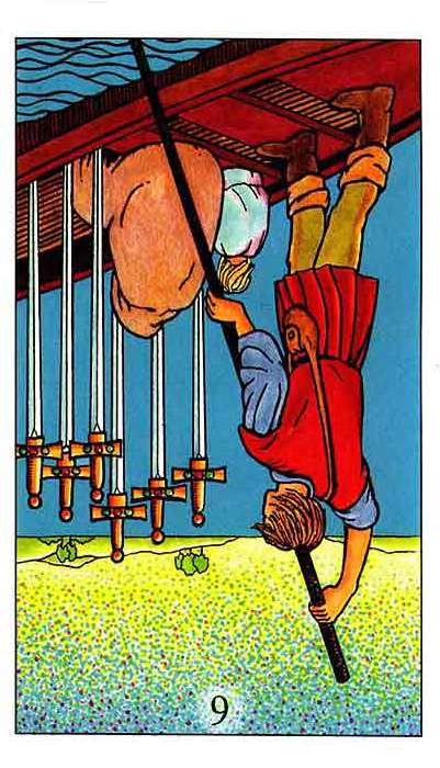 If a card is upside down, that is the common notation for the opposite meaning of the card, also known as the "negative" or "reversed" meaning of the card.