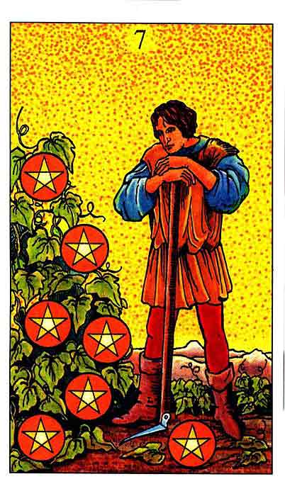 The 7 of Pentacles is about perseverance, about not giving up the work. Yet it may also make you aware that while you've started the job, you're now perhaps also quickly tired from the work.