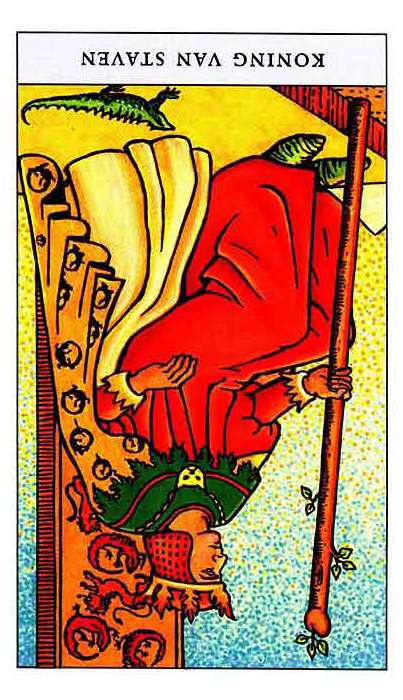 The King of Wands uses the properties of Wands (vitality, optimism, enthousiasm) to go out with confidence. He is seen as a leader with charisma.