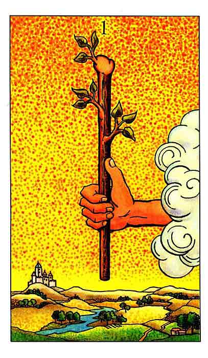 The ace of wands represents the beginning of an idea. The element fire and the number 1 give a powerful combination: enterprise and new beginnings apply to both. This is an energetic combination, which is why the card is generally considered a positive one. Spring is the season associated with this card.