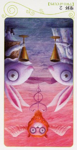 This the first assignment number of the Cups suit. Unlike Wands, with the Fire element, Cups, with the water element, has a lot more patience. Water is by nature more introspective, and this second card in the Cups suit is indeed about exploring yourself. The outcome is uncertain as always, but it usually results in better acceptance of yourself.