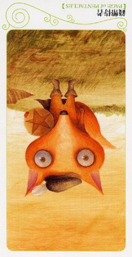 Pages explore and gather information about the road ahead, with an almost naive attitude. The Page of Pentacles is sometimes described as a bridge builder; Pentacles is the suit where the actual work is done, and the Page here enables those that follow to quickly cross difficult terrain.