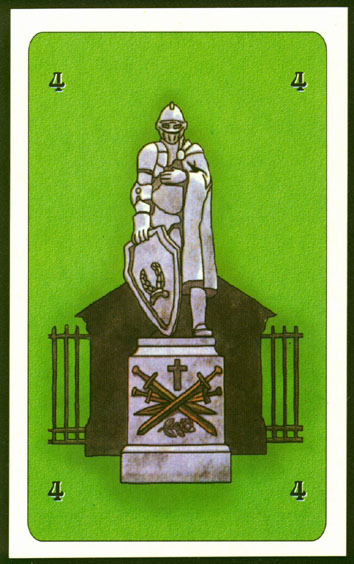 4 is the first number in the cycle of giving things shape. It's about making things real. The element of Swords also relates to making things real, so this enhances the effect so much that arrogance can cause you to exhaust yourself.