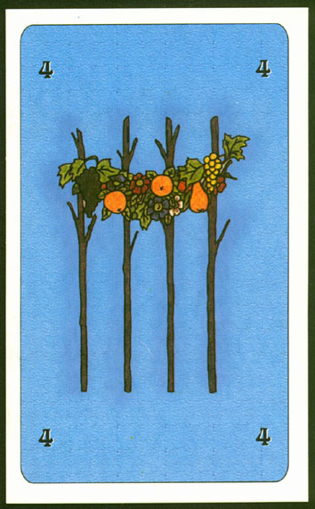 The number and element of this card (4=structure, element=fire) are in sync because fire can use the stability of structure, and structure can use the liveliness of fire. Here the structure of 4 doesn't cause stagnation.