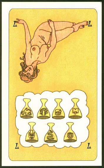The 7 of Cups is about making a choice between different ideals. But Cups, with the water element, don't like making definitive choices that much, making this 7 in this suit a bit of a hard choice.