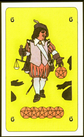 The number this card carries is 15, composed that is 6. The resemblances to the first '6' card (The Lovers) are remarkable; in both cards security is a central theme.