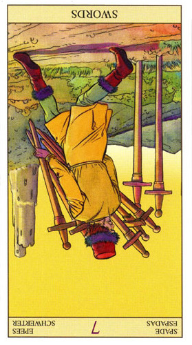 The 7 of Swords is about making slow progress because you can't trust the situation and/or people around you.