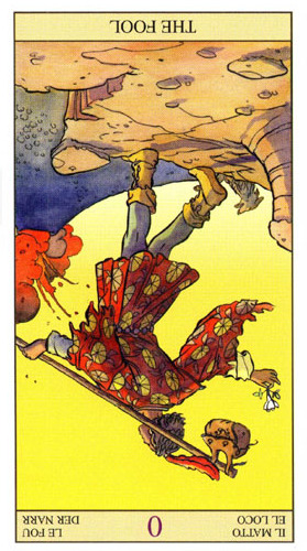 If a card is upside down, that is the common notation for the opposite meaning of the card, also known as the "negative" or "reversed" meaning of the card.