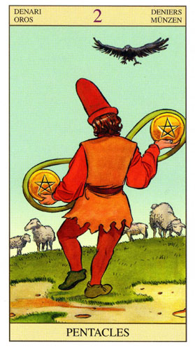 The 2 of Pentacles is an assignment number card, and the assignment here is to maintain a happy and relaxed attitude during a wait for results of what you started.