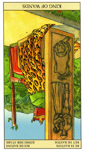 The King of Wands uses the properties of Wands (vitality, optimism, enthousiasm) to go out with confidence. He is seen as a leader with charisma.