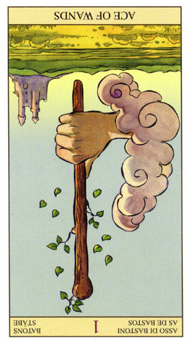 The ace of wands represents the beginning of an idea. The element fire and the number 1 give a powerful combination: enterprise and new beginnings apply to both. This is an energetic combination, which is why the card is generally considered a positive one. Spring is the season associated with this card.