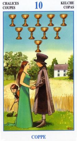 The 10 of Cups is the link to the Swords suit. It is time to leave your own emotions behind and face the world and the tasks ahead.
