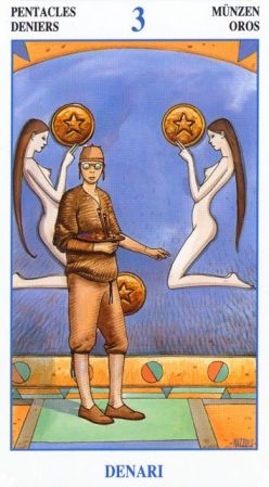 The King of Pentacles uses his Earthly attributes to rule. He goes about his work like an old style business man; he avoids unnecessary risks, aims for real results, and acts from confidence.
