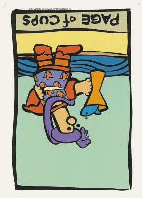 The Page of Cups is about cautiously exploring your own emotions (about the course ahead).