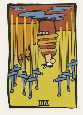 The 8 of Swords is about slowly regaining strength and energy. The 8 is an assignment number, and in the element of Swords it's a bit harder than usual.