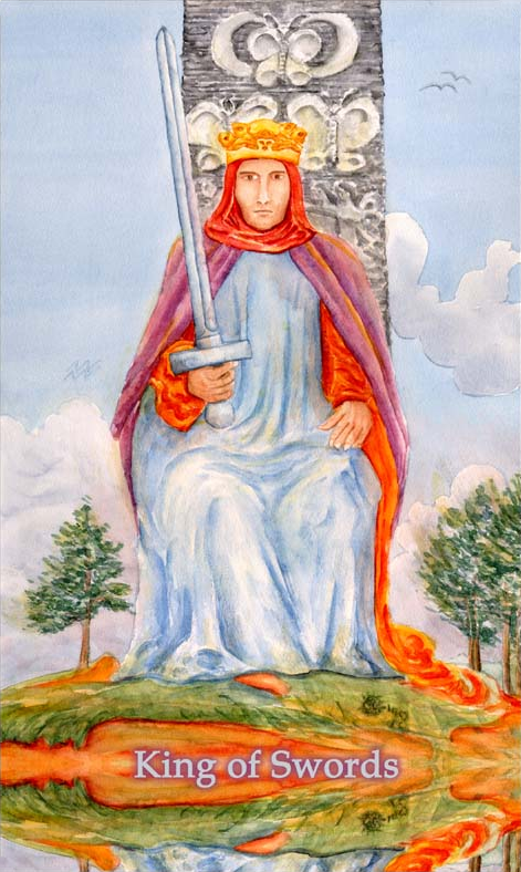 The King of Swords rules with diplomacy and a strong sense of responsibility, not just for himself but also for those around him, yet he is not afraid to make heavy decisions that compel him to eliminate dangers and dangerous opponents with some force.