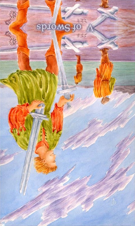 The 5 of Swords is about facing reality. The 5 is an assignment number, and in the slighly more difficult suit of Swords, it means you face a difficult challenge where your past experiences could hold you down.