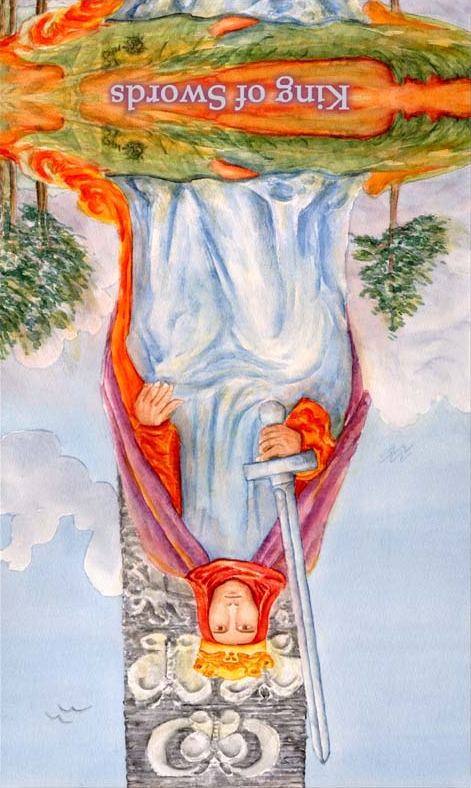 The King of Swords rules with diplomacy and a strong sense of responsibility, not just for himself but also for those around him, yet he is not afraid to make heavy decisions that compel him to eliminate dangers and dangerous opponents with some force.