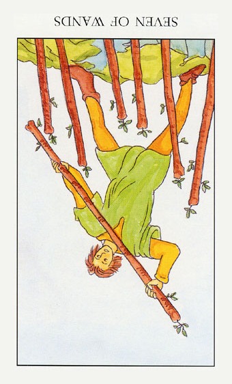 With the 7 of Wands, the striving cycle starts. It is about having the determination to complete your ideas, despite the fact that that might cause you some discomfort.