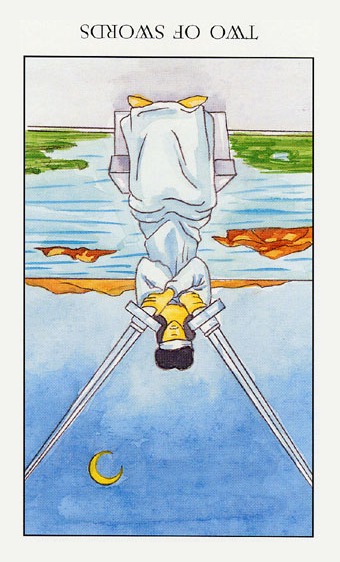 The 2 is an assignment number in tarot, and in this case of the 2 of Swords, it's about being forced to wait for something, often even while blindfolded in some sense.