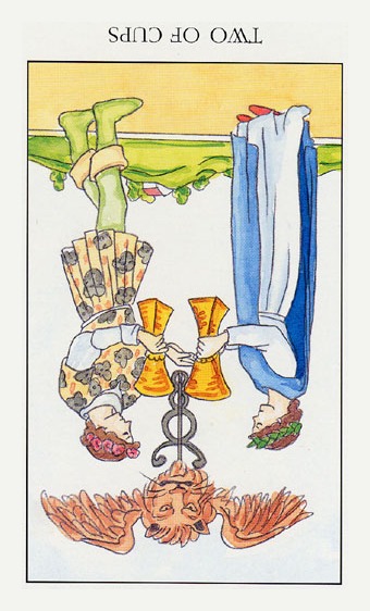 This the first assignment number of the Cups suit. Unlike Wands, with the Fire element, Cups, with the water element, has a lot more patience. Water is by nature more introspective, and this second card in the Cups suit is indeed about exploring yourself. The outcome is uncertain as always, but it usually results in better acceptance of yourself.