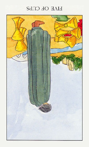 The 5 of Cups is about overcoming sadness and disappointment. You've let go of your old securities to embrace the new and exciting, now something has gone awry and you feel bad about that. But don't forget to notice those things that did go right.