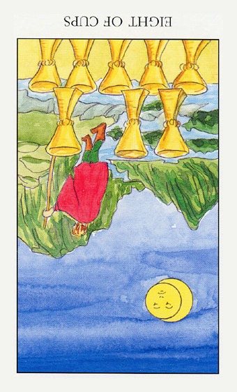 8 is an assignment number, and in the suit of Cups, it is about overcoming the urge to sink into depression caused by view on the long road ahead.