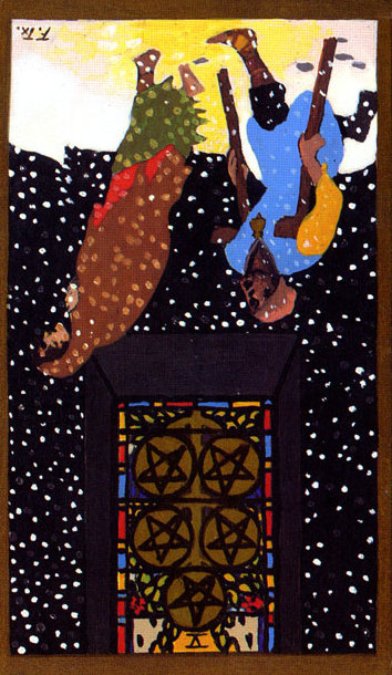 The number this card carries is 15, composed that is 6. The resemblances to the first '6' card (The Lovers) are remarkable; in both cards security is a central theme.