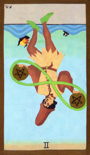 The 2 of Pentacles is an assignment number card, and the assignment here is to maintain a happy and relaxed attitude during a wait for results of what you started.