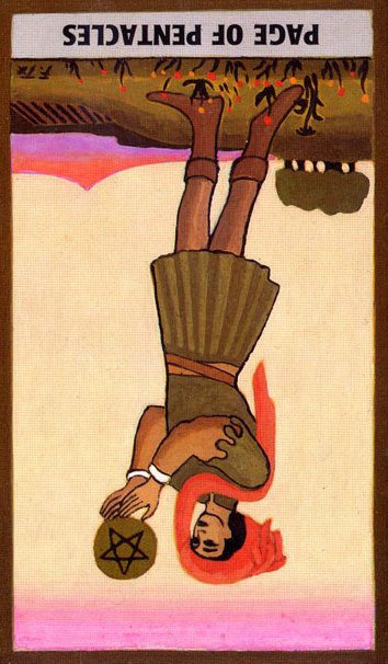 Pages explore and gather information about the road ahead, with an almost naive attitude. The Page of Pentacles is sometimes described as a bridge builder; Pentacles is the suit where the actual work is done, and the Page here enables those that follow to quickly cross difficult terrain.